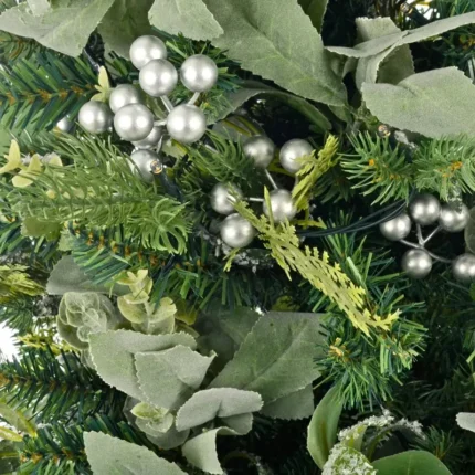 This light up green foliage and silver berries tabletop Christmas tree will add festive farmhouse style to any room in your home. Inspire thoughts of a snow covered log cabin in the mountains with the natural looking forest foliage. And if you love this realistic Silver Berries Christmas Tree, we have a Light Up Silver Berries Wreath and Christmas table centrepiece.