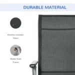 Relaxing outdoors, thanks to this folding garden chairs from Outsunny. Each chair can be set to ten different positions between the back and foot area, meaning you are able to set to a shape best for you. Using mesh fabric for the seats, you are able to sink in with full body support, whilst the mesh composition allows the skin to breathe. Made from sturdy powder coated steel, each chair is tough and solid, finished with armrests for extra comfort and support.