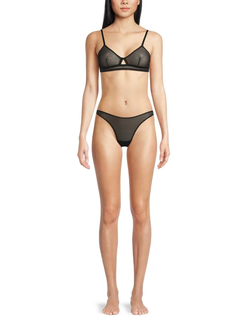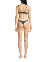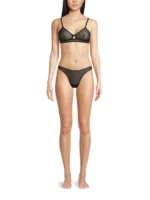 Sheer mesh, scooped waist, mid-rise fit. Thong made in sheer, textile mesh for a breezy look and feel, featuring a mid-rise string that can be worn high in the waist or lower on the hips, as well as thin elastics at the waist and along the leg openings.