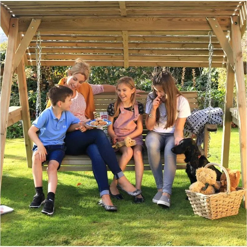 The Miami 3 Seater Swing is a stylish feature for the garden area. A larger version of the existing Miami Swing Seat, the Miami Three Seater Swing is ergonomically designed for comfort and comes complete with wooden canopy, offering ultimate sheltered relaxation for up to three adults.