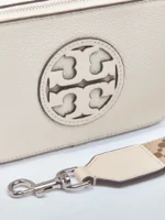 A new shape from our signature collection. The Mini Miller Crossbody Bag is crafted in soft pebbled leather with two zippered compartments and a laser-cut Double T. Wear it with or without the removable jacquard strap.