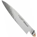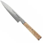 The D-shaped handle is made from Masur birch wood. This wood has a beautiful natural pattern, which makes every knife unique. There is a magnificent mosaic pin in the middle of the handle – another stunning detail that highlights this collection’s superior finish and attention to detail. The warmth of the natural wood also contrasts nicely with the Damascus steel blade. And, as the star attraction, the Miyabi logo is beautifully engraved on the back of the handle.