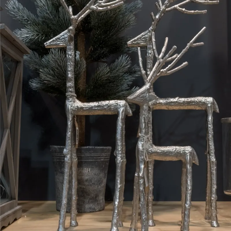 Made from durable metal with a polished silver finish, this floor-standing stag blends effortlessly into a variety of decor styles. It’s a striking yet elegant ornament that adds a touch of character and makes an excellent gift for those who appreciate home decor and stags. Stylish and distinctive, this ornament offers a timeless way to bring character to your home. Display it solo or alongside smaller sizes for a coordinated look that stands out.