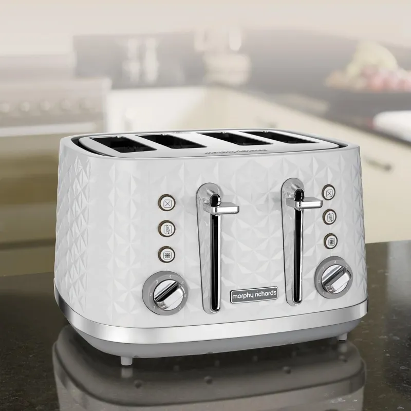 Morphy Richards Vector 1.5L 3KW Pyramid Kettle & 4 Slice Toaster in White