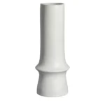 With its unusual shaped and lightly textured white glaze this vase makes for a striking and contemporary piece.