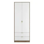 Home Indoor Furniture Nashville F Tall Wardrobe White & Vintage Oak 2 Doors 2 Drawers 77cm