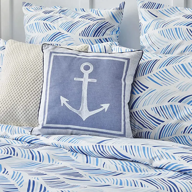 Nautica Home Wave 100% Turkish Cotton Duvet Cover Set, Single, 140cmx200cm, Blue White