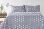 Helping you create the perfect cosy oasis in your bedroom is the New York Spots duvet set. It features a simplistic spot design in white across a comforting grey background with a striped reverse. Easing you into a blissful sleep, this duvet set includes a 200 thread count and is made from 100% polyester, ensuring you have a really comfortable nights rest. It includes a matching pillowcase.