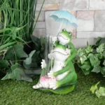 Frog Rain Gauge with Umbrella. Size: W11 x H22 x D13cm