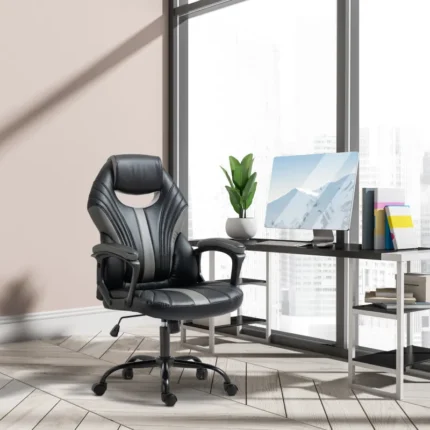 Vinsetto Computer Gaming Chair, Desk Chair with Breathable PU Leather Back and Seat, Soft Padded Armrests and Rolling Wheels for Adults and Gamers, Black