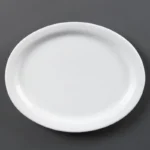 Our great value pure white oval shaped platters by Olympia are fully vitrified for heat and shock resistance, the ideal crockery for hotels which want simplicity.