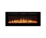 The Orlando electric wall mounted fire will set your imagination alight with the atmospheric log and crystal fuel bed, LED flame effect technology and multi-colour settings. The Orlando also provides a heat output of 1kW and 2kW which can be operated with the supplied remote control on a 7-day programme, the remote control will also operate the flame effect and colour settings. Another added feature is that the fire can be recessed into a wall as well as being easily wall mounted and once installed the Orlando will be the focal point of your room.