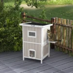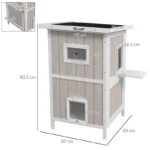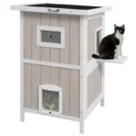 Outdoor 2 Tiers Wooden Cat Shelter w/ Removable Bottom, Escape Doors, Asphalt Roof, for 1-2 Cats – Light Grey