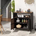 Create a clutter-free outdoor activity zone with the rattan storage cabinet. With a spacious cabinet top, open shelf, and 2-tier enclosed section, the rattan storage cabinet offers sufficient space to keep your food, condiments, or garden tools in place. The sun-proof hand-woven rattan of our cabinet ensures longevity and elevated style. The acacia wood top with distinctive grain adds charm to the piece, while allowing you to enjoy its beauty without the hassle of constant upkeep. The rattan buffet cabinet is built on a sturdy metal frame that is designed to ensure large load-bearing capacity. And the adjustable foot pads ensure the cabinet to stand stably without wobbling. With above all advantages, the rattan buffet cabinet is a versatile outdoor furniture that is perfect for patios, gardens, or poolsides. Ample Storage Space: The rattan storage cabinet features a wide top that allows you to showcase your potted plants or delicious food. And the open shelf allows for easy access to frequently used items. Additionally, the double door 2-tier cabinet can help you organize different items. Elegant Hand-woven PE Rattan: Crafted from black/mixed brown hand-woven PE rattan that is both sun-proof and fade-resistant, the patio storage organizer promises longer service life, thus adding a touch of sophistication to your outdoor spaces. Note: Please do not leave the product in outdoors in rainy days. Acacia Wood Countertop: The counter table of the garden sideboard buffet cabinet is made of high hardness acacia wood, which exudes natural charm without compromising superior wear-resilience. Moreover, the wooden surface is painted for simple maintenance. Outstanding Stability: Supported by a sturdy metal frame, the outdoor wicker storage cabinet can hold up to a large weight. With adjustable foot pads to ensure optimal stability, the rattan storage container can adapt to various terrains without wobbling. Perfect Outdoor Addition: Combining natural acacia wood and elegant PE rattan, the pool storage organizer will seamlessly blend into your outdoor settings, such as gardens, yards, poolsides, porches.