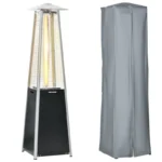 This Outsunny patio gas heaters will keep you warm and cosy when the outside temperature is cold. The shell made from selected material, making the propane gas heaters tough and durable for extended use, with a cover included to keep it protected when off. Where the flame comes out, there is a glass cover and netting to safely protect you from harm. The gas outdoor heater has a control knob to keep the perfect temperature. The pyramid patio heater is finished with wheels to move around easily.• 11.2KW, temperature is adjustable – ignition device requires 1 x AAA battery (included)