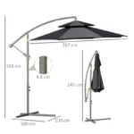 Outsunny 2.7m Banana Parasol Cantilever Umbrella with Crank Handle, Double Tier Canopy and Cross Base for Outdoor, Hanging Sun Shade, Black