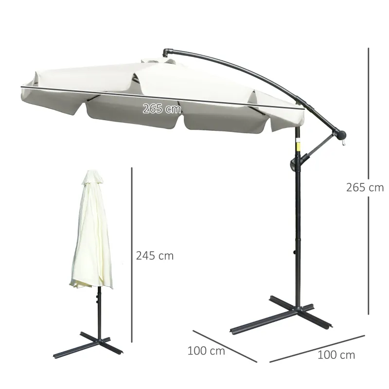 Outsunny 2.7m Garden Banana Parasol Cantilever Umbrella with Crank Handle and Cross Base for Outdoor, Hanging Sun Shade, Cream White