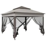 Outsunny 3.25 x 3.25m Pop Up Gazebo, Double-roof Garden Tent with Netting and Carry Bag, Party Event Shelter for Outdoor Patio, Brown and Grey