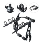 • Soft rubber cradles to securely hold the bike without damaging your car. 6 safety strap attachment with cam-lock buckles for extreme stability
