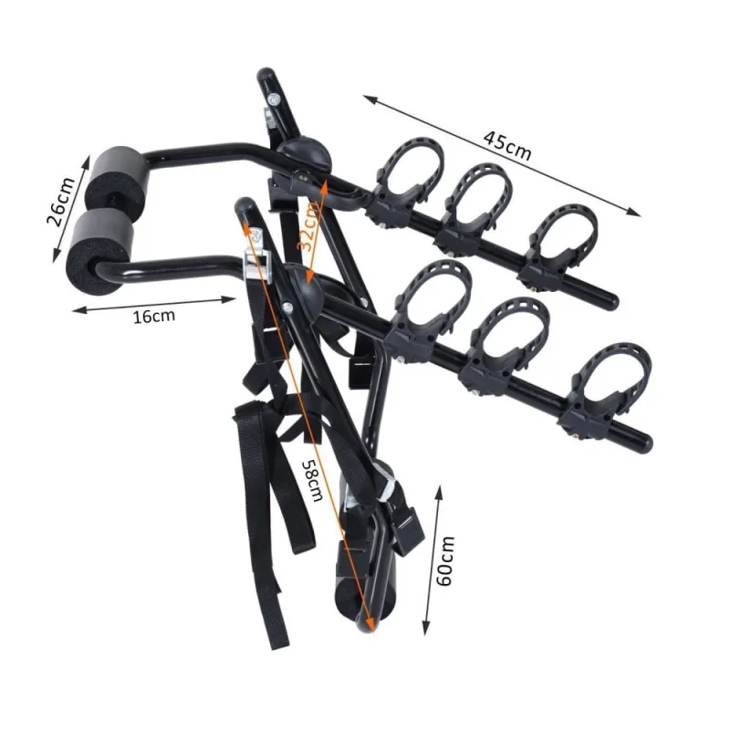Home other Outsunny 3 Bike Rear Hitch Mount Carry Rack Car Truck Carrier Bicycle Mountain Universal Fitting w/ Fix Strap Black