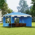 Outsunny 3 x 4 m Garden Gazebo Shelter Marquee Party Tent with 2 Sidewalls for Patio Yard Outdoor, Blue