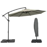 Outsunny 3m Overhanging Parasol, with Base, Weights and Cover – Light Grey