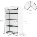 Outsunny 4 Tier Lean-to Mini Greenhouse with Reinforced PE Cover, Portable Small Greenhouse with Roll-Up Door, Grey Hemmed Edging, 110 x 50 x 171cm, Grey