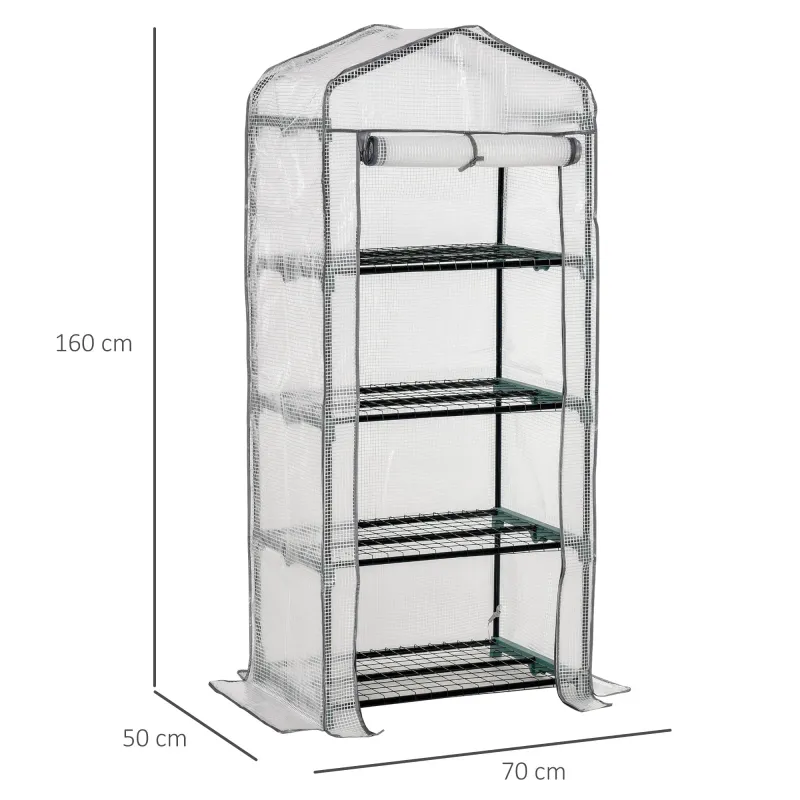 Home Gardening Outsunny 4 Tiers Portable Mini Greenhouse Plant Grow Shed Green House Metal Frame Pe Cover 160H X 70L X 50W cm White