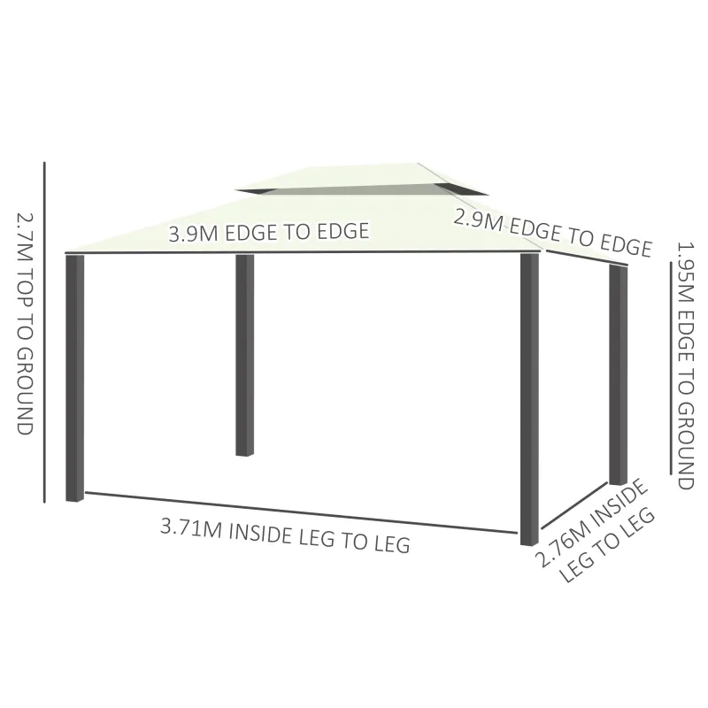 Outsunny 4 x 3 m Aluminum Garden Gazebo, Double Roof Outdoor Gazebo Canopy Shelter with Netting & Curtains for Garden, Lawn, Backyard and Deck, Cream