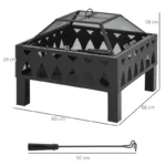 Outsunny 66cm Outdoor Fire Pit with Screen Cover, Wood Burner, Log Burning Firepit Bowl with Poker for Patio, Backyard, Black