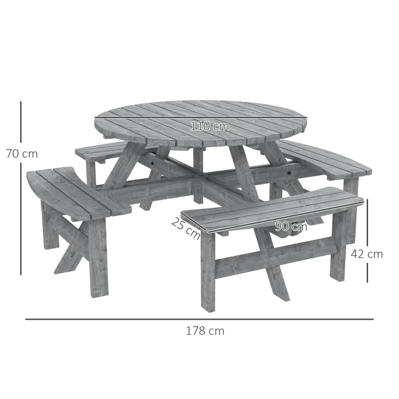 This Outsunny wooden bench set is a great addition to any outdoor setting, offering the ability to accommodate up to 8 people. Circular design gives lots of room for comfortable movement and enjoyment of the space. A precision-cut hole in the middle for parasol enables shade options in summer. Fir wood construction for added strength and stability with smooth edges and weight capacity of 227 kg for table and 227 kg for bench.
