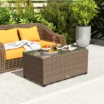 Home Rattan Furniture Outsunny 90 x 50cm Glass-Top Rattan Side Table – Brown