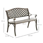 Outsunny Cast Aluminium Outdoor Garden Bench 2 Seater Antique Patio Loveseat, Bronze