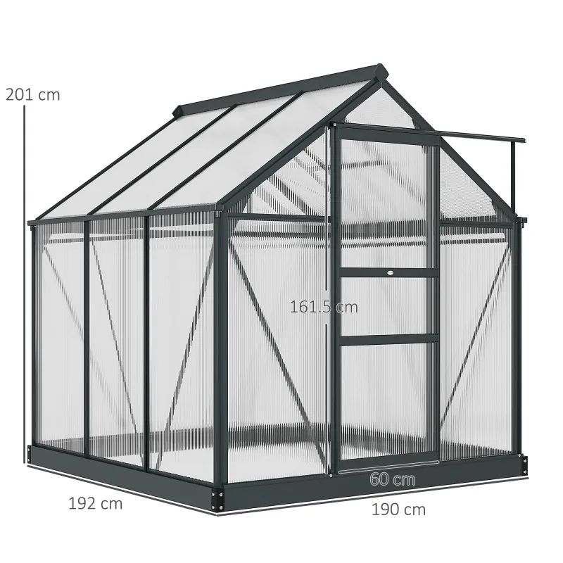 Outsunny Clear Polycarbonate Greenhouse Large Walk-In Green House Garden Plants Grow Galvanized Base Aluminium Frame With Slide Door