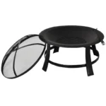 Outsunny Fire Pit Heater Round Cover Wood Burning Metal Black 30” Outdoor