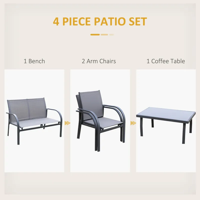 Outsunny Four-Piece Minimal Garden Patio Set – Grey
