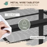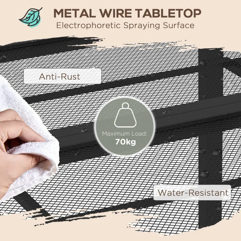 Gather round and experience memorable outdoor gatherings, thanks to this Outsunny four-seater garden table. Made from steel, it is a tough piece, fitted with an electrophoretically-coated mesh table top: a reliable dining surface with a protective coating. It can be easily wiped clean clean with a damp cloth. The centrepiece to an abundance of happy memories.