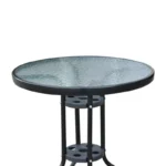 • Made from a metal frame with Glass top. 5mm tempered glass table top without umbrella hole.