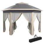 Outsunny Hexagon Pop Up Gazebo Outdoor Patio Gazebo Double Roof Instant Shelter with Netting, 3 x 4m, Khaki