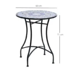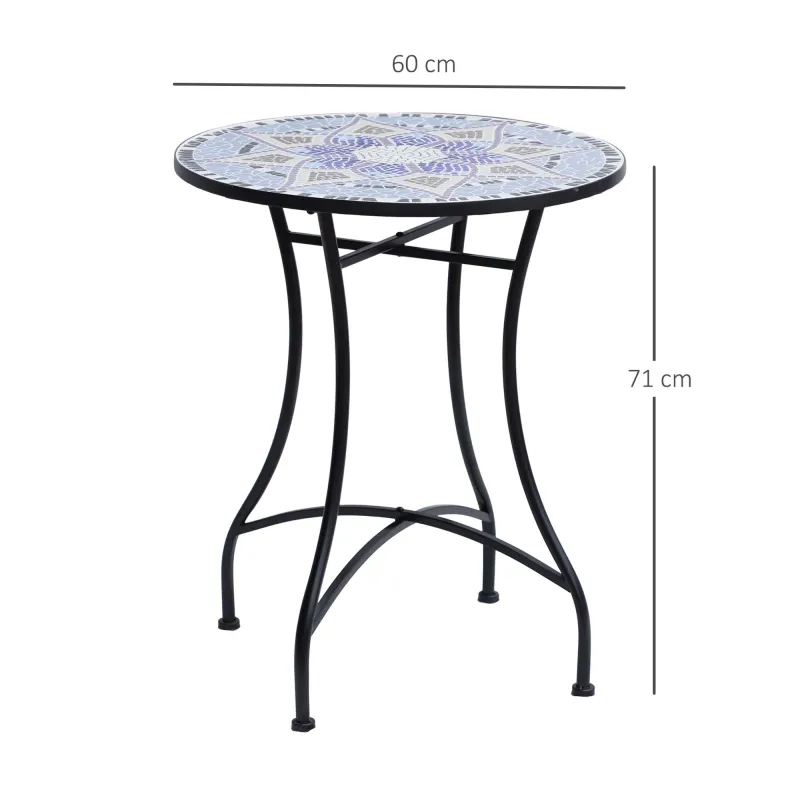 Outsunny Outdoor Mosaic Round Garden Table, Patio Bistro Coffee Side Table with 60cm Ceramic Top for Garden, Blue and White