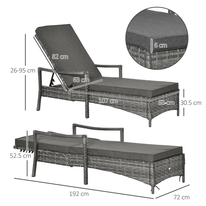 Outsunny Patio Rattan Sun Lounger, Dual Wicker Weave Outdoor Single Reclining Chair Furniture, 4-Level Adjustable Backrest w/ Removeable & Washable Cushion, Mixed Grey