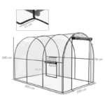 Outsunny Polytunnel Greenhouse Walk-in Grow House with Plasric Cover, Door, Mesh Window and Steel Frame, 3 x 2 x 2m, Clear