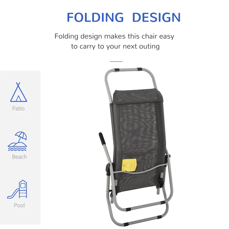 Outsunny Set of 2 Outdoor Patio Chaise Recliner Portable Lounge Chairs w/ Rust-Resistant Steel Frame & Adjustable Backrest, Grey