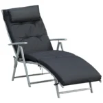 Outsunny Steel Frame Outdoor Garden Padded Sun Lounger w/ Pillow Black