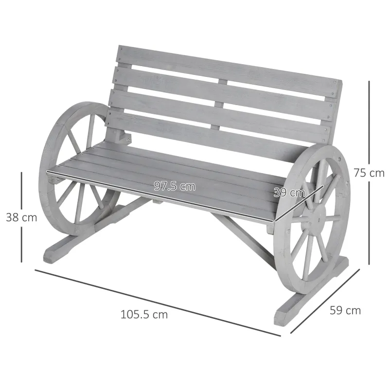 Outsunny Wooden Cart Wagon Wheel 2 Seater Garden Bench Outdoor Garden Armrest Chair Rustic High Back Loveseat Grey