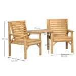 Outsunny Wooden Garden Love Seat, 2 Seater Jack & Jill Companion Seat with Coffee Table and Parasol Hole, Partner Bench, Table and Chairs Set, Outdoor Furniture for Garden, Balcony, Patio, Brown