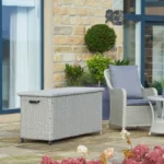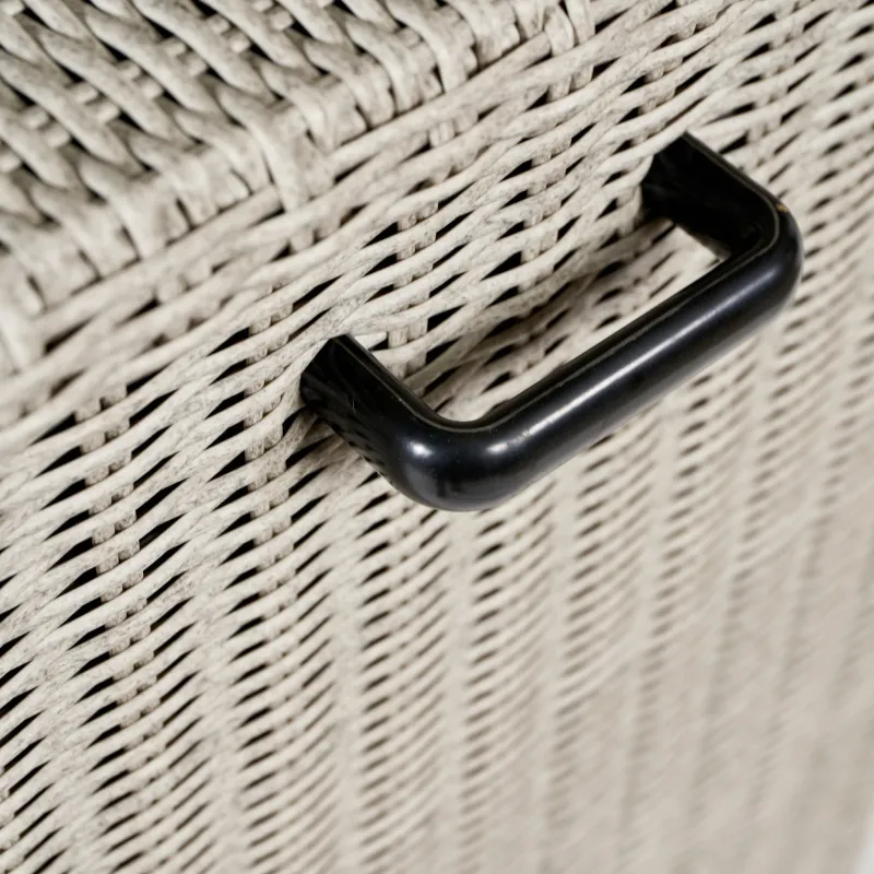 These outdoor cushion boxes are made from synthetic rattan, which retains all the aesthetic qualities of natural rattan, whilst being durable, weather-resistant and UV protected. The powder-coated aluminium frame gives a high-quality finish, further ensuring that this piece is strong and long-lasting. This handy box will keep your cushions protected all year long, making it a true garden essential.