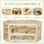 PawHut 3 Tier Wooden Large Hamster Cage with Sliding Tray, Seesaws, Water Bottle, Natural