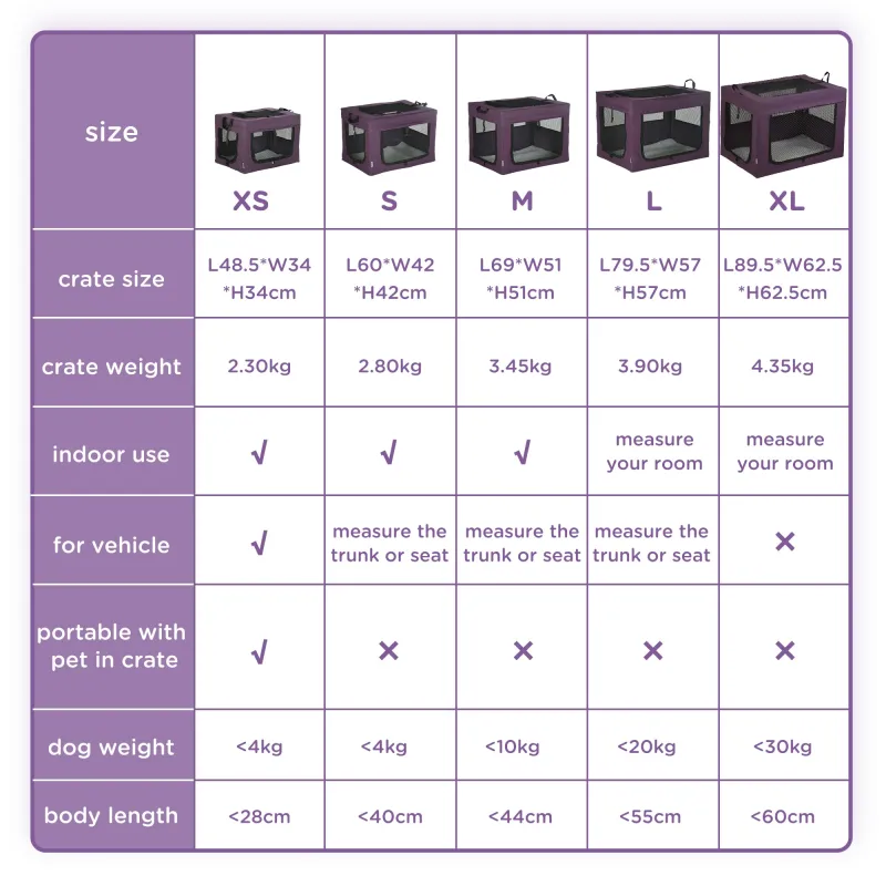 - Suitable for miniature and small dogs less than 44cm in length and 10kg in weight