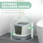 This PawHut kitten litter tray features an enclosed structure, offering pets privacy and containing odours with two replaceable deodorisation bags and a flap door. Its removable top, pull-out drawer and scoop make cleaning effortless. The top exit helps keep paws clean by removing excess litter. Compact and easy to place anywhere in your home, it provides a private space for pets to litter.